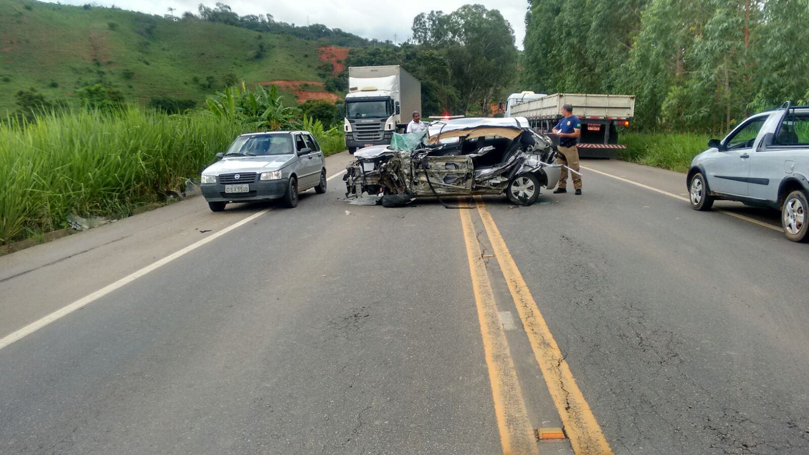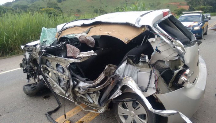 Motorista de veículo sobrevive a grave acidente entre carro e caminhão próximo à Inhapim