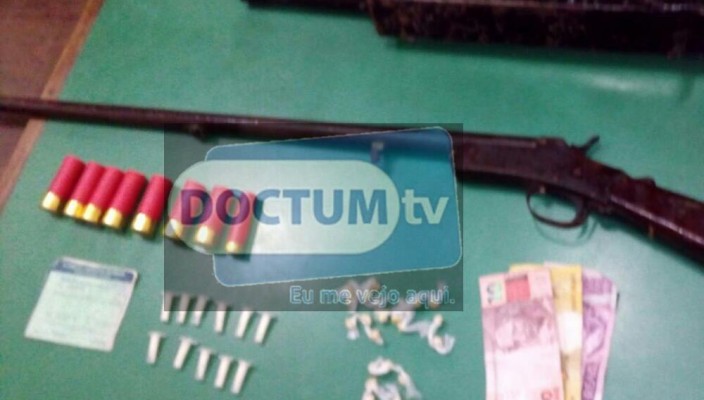 Durante vasculhamento nos locais onde os suspeitos estiveram foram encontrados também: uma escopeta calibre .12 e 11 papelotes cocaína.