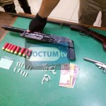 O outro envolvido fugiu mas deixou uma bolsa contendo uma espingarda calibre .28, munições calibre .12 e .28 e uma pequena quantia em dinheiro.