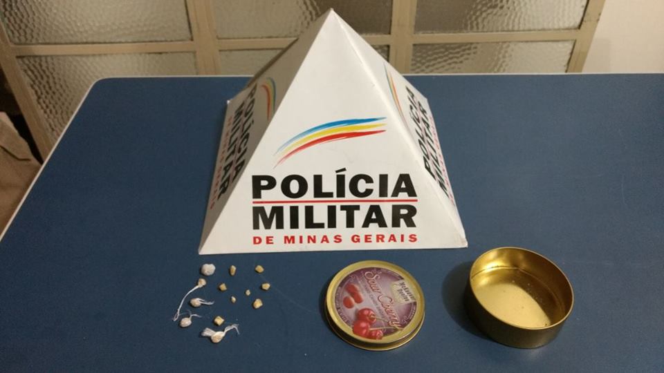 O condutor Flávio Antônio de Oliveira foi abordado e submetido à busca pessoal, sendo localizada em sua cintura uma lata contendo 13 pedras de crack.