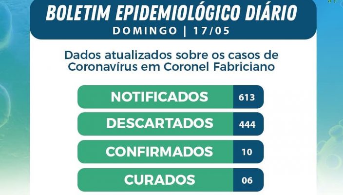 A Prefeitura de Coronel Fabriciano confirmou o 10º caso positivo de contaminação pelo novo coronavírus na tarde deste domingo (17). O caso foi confirmado com a publicação do último boletim epidemiológico do município.