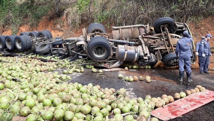 O motorista do caminhão e o ajudante morreram no impacto do veículo com o barranco. Os bombeiros interditaram a rodovia, uma vez que havia vazamento de óleo. A carga de cocos ficou espalhada na pista. O trânsito ficou impedido por várias horas. Foi preciso chamar um guincho para retirar o corpo das vítimas de dentro da cabine e liberar o trânsito. Os corpos de Rogério Brito Cardoso e Josias da Silva e Silva foram levados para o IML de Caratinga.