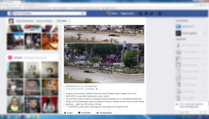 Nas últimas semanas, um forte movimento nas redes sociais foi realizado pelos internautas questionando a atual situação que está a praça Cesário Alvim. Eles afirmavam que o cartão postal da cidade estaria sendo moradia de pessoas em situação de rua. Nossa equipe de jornalismo acompanhou uma manifestação realizada pelos internautas de Caratinga sobre a atual situação que se encontra a Praça Cesário Alvim, no centro de Caratinga. Diversas pessoas em situação de rua fazem da praça moradia. Conseguimos encontrar colchões, cobertas e até travesseiros dos moradores. Em meio a praça, conhecemos Cléber Ambronati Sanches, ele é da cidade de São Bernardo do Campo -SP e esta em Caratinga há pouco mais de 15 dias, e que segundo ele nenhum agente do Creas realizou algum tipo de contato com ele. Cléber contou que está se virando para dormir em meio ao frio de Caratinga. Procuramos o Centro de Referência Especializado de Assistência Social e fomos atendidos pela coordenadora Andreia Moreira, que nos afirmou que as pessoas encontradas em situação de rua na cidade são de responsabilidade do município. De acordo com Andreia, agentes da prefeitura realizam duas visitas por semana visando ajudar os moradores de rua. A coordenadora afirmou que os trabalhos do Creas está sendo intensificado. Inclusive, uma reunião com todos os órgãos do Desenvolvimento Social participará de uma reunião no dia 2 de agosto na secretaria de Estado e Desenvolvimento Social, em Belo Horizonte para falar sobre a situação dos moradores de rua. Andreia afirmou que o Creas não pode realizar um trabalho contra a vontade dos moradores de rua, a intervenção parte da vontade deles de ser ajudado. A coordenadora do Creas disse ainda que Caratinga não dispõe de um abrigo para acolher os as pessoas em situação de rua, porém quando de vontade do cidadão, o município arca com a passagem para a cidade de moradia do mesmo. Segundo ela, hoje em Caratinga existem aproximadamente 50 pessoas encontradas em situação de rua. Andreia afirmou que o município não tem um plano para solucionar o problema referente a concentração dos moradores encontrados na Praça cesário Alvim. Mesmo sendo o cartão postal da cidade, ela afirma que, toda pessoa tem o direito de ir e vir, conforme a constituição nacional.