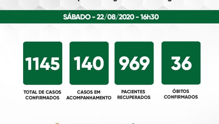 Boletim Epidemiológico desta sexta-feira (21) registra 35 novos casos de Covid-19 e 954 pacientes recuperados: