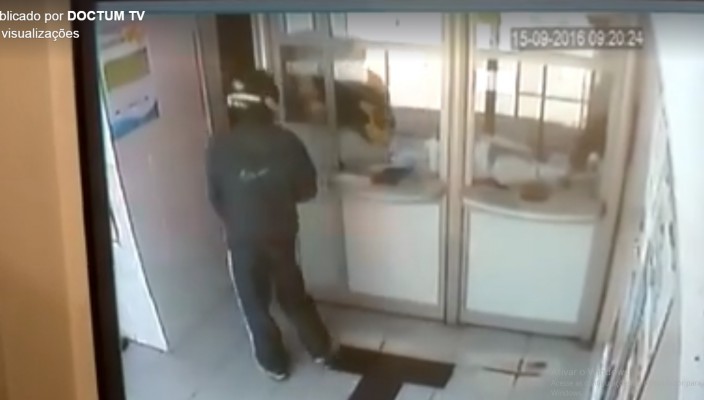 As câmeras de segurança da lotérica registraram toda a ação dos bandidos. Nas imagens é possível ver que os dois homens chegaram armados ao local. Os criminosos foram até o caixa e bateram no vidro com a arma, exigindo que a funcionária abrisse a porta de acesso ao estabelecimento. Ela atendeu ao pedido dos bandidos e acabou sendo rendida sob a mira do revólver calibre .22.