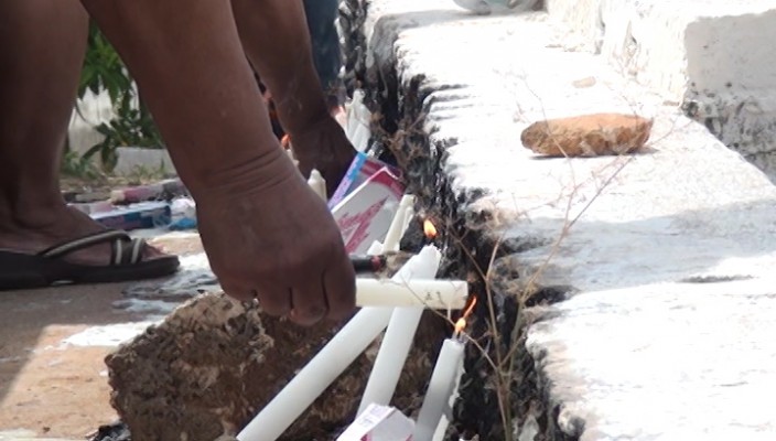 Do lado de dentro as tradicionais velas eram acesas. Os familiares também enfeitaram as sepulturas com flores. Rodrigo Oliveira veio visitar o túmulo de um amigo.