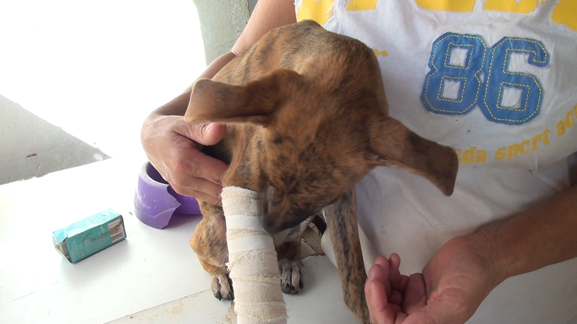 Mel está sendo medicada, na medida do possível, pois a ONG está sem condições de comprar os remédios. Os curativos precisam ser trocados duas vezes ao dia e a cirurgia de Mel deve ser feita em Coronel Fabriciano, para que ela não tenha que amputar a patinha.