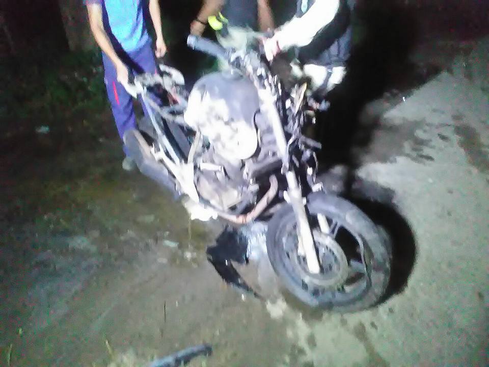 Após a batida, a moto pegou fogo. O motociclista Mailson Oliveira Silva, de 23 anos, foi socorrido pelos bombeiros militar de Caratinga e pelos bombeiros voluntários de Ubaporanga e levado para o PAM de Caratinga com fratura no fêmur direito.