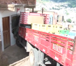 Caminhão perde o freio e bate de frente em uma casa