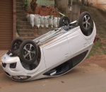 Idosa capota carro ao confundir acelerador com freio